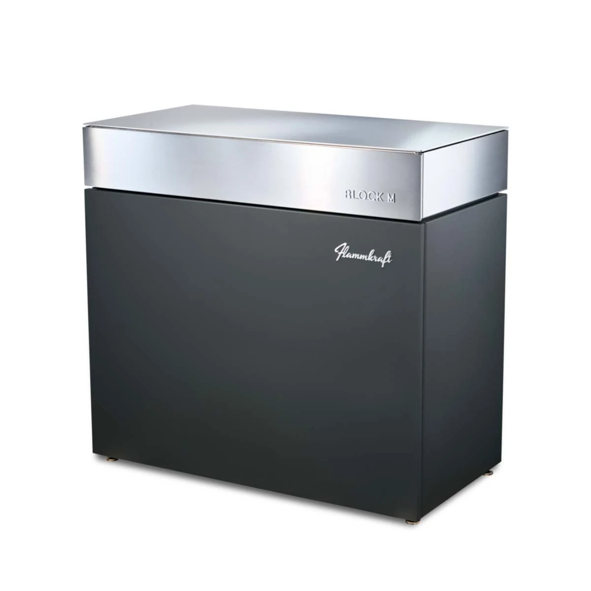 Der Block M ist ein aus 100% Edelstahl, in der Grundfläche entspricht er dem Block D und ist in den gleichen Farben erhältlich. Neben umfangreichen für Zubehör bietet der Block M einen Abfallbehälter und eine komfortable Lösung für die Vorbereitung und Bereitstellung von Z