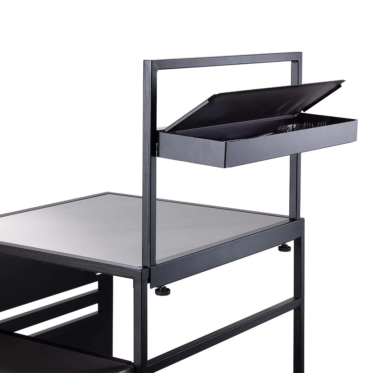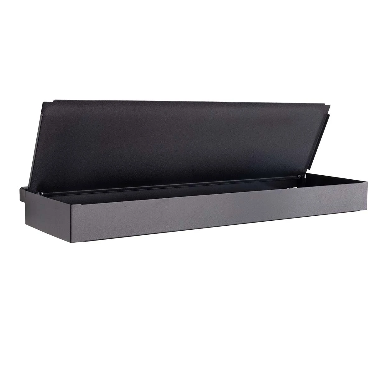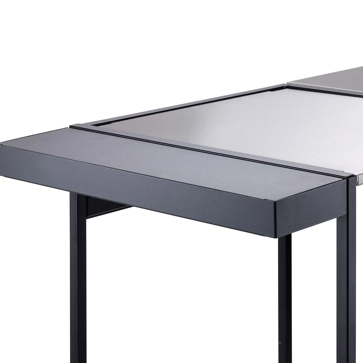 OMK ist die erste mobile Outdoor Küche, die Ihr mit nur wenigen Handgriffen werkzeuglos auf- und wieder abbauen könnt – und das ganze in nur einer Minute. Mit der passenden Auflage zum Einhängen in den Beistellwagen, die dritte Ebene oder die Garage könnt Ihr Eure One Minute Kitchen im Handumdrehen erweitern und habt Euer Grillbesteck und Eure Schneidemesser direkt zur Hand. Dank des Klappdeckels sind Eure Grillutensielien vor Umwelteinflüssen geschützt. Die Auflage ist aus verzinktem Stahlblech und schwarz pulverschichtet – Made in Germany.
