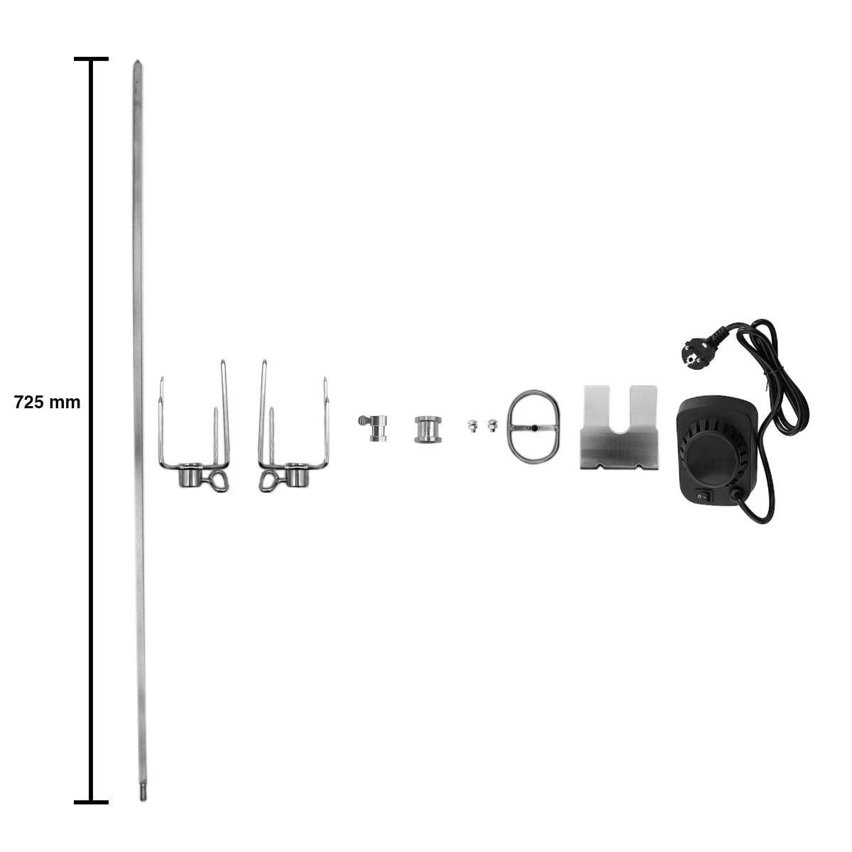 Ein strombetriebener Drehspieß grillt fast von alleine. Einfach zurücklehnen und den Drehspieß die Arbeit machen lassen.