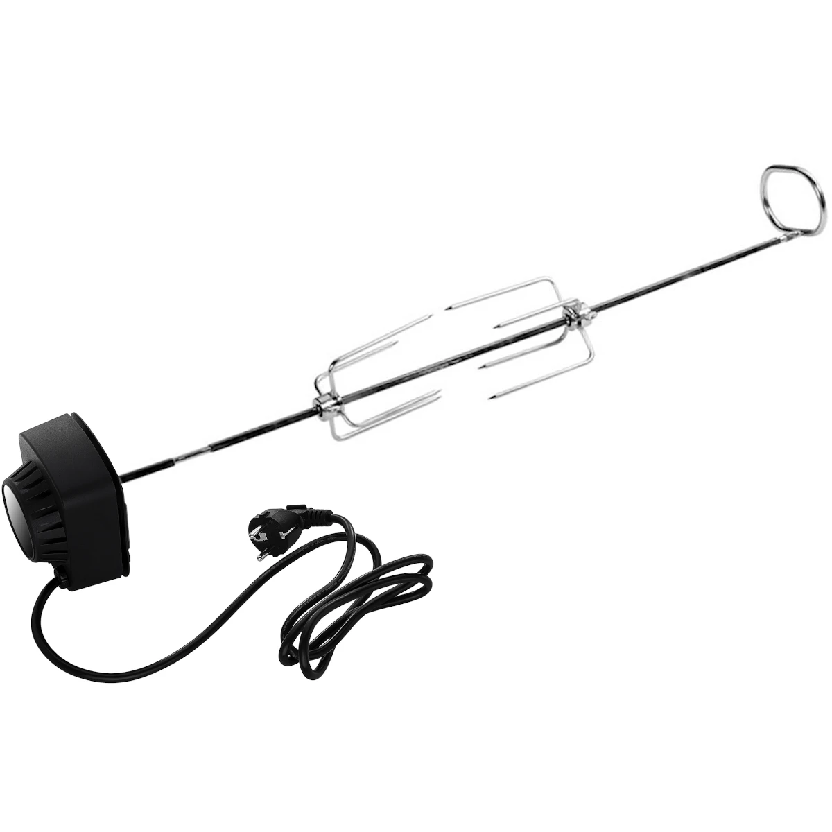 Ein strombetriebener Drehspieß grillt fast von alleine. Einfach zurücklehnen und den Drehspieß die Arbeit machen lassen.