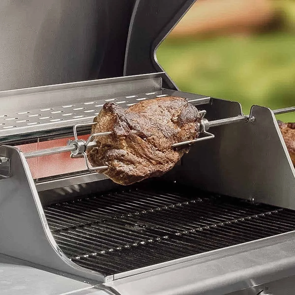 Ideal für die Zubereitung von Grillgut auf einem Drehspieß ist natürlich die Hitzezufuhr über einen Backburner, da die von hinten kommende Hitzequelle die Gefahr eines Fettbrandes minimiert. Aber auch ohne Backburner lassen sich auf Ihrem Grill köstliche Grillgerichte zubereiten.