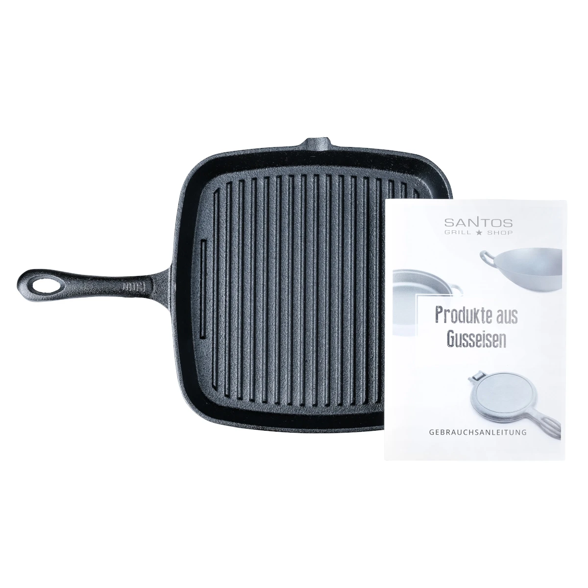 Die quadratische Santos Grillpfannen wurden aus robustem Gusseisen ohne jegliche Zusatzstoffe und Schadstoffe hergestellt. Unsere Pfannen sind unverwüstlich und haben aufgrund einer sehr hohen Temperaturbeständigkeit eine extrem hohe Lebensdauer.
