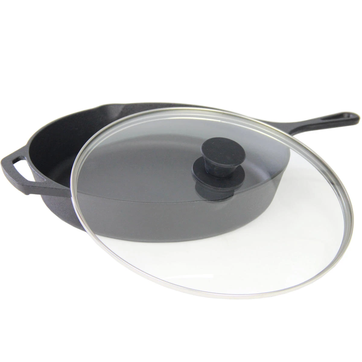 Eine Pfanne aus massivem Gusseisen ist ein echter Klassiker, nahezu unverwüstlich und ein wahres Multitalent. Sie ist als Bratpfanne, Grill- oder Schmorpfanne einsetzbar und eignet sich für alle erdenklichen Hitzequellen von Elektroherd bis offenes Feuer. Die SANTOS Gusspfanne kommt zusätzlich mit einem passenden Glasdeckel daher – so klappt’s auch mit dem Schmoren im leckeren Bratensaft oder dem Warmhalten fertig gegarter Köstlichkeiten.