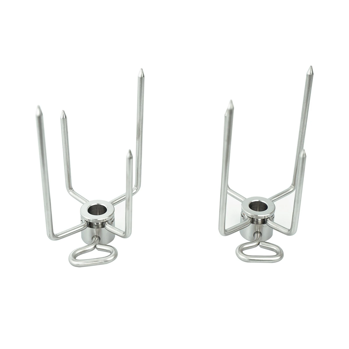 Auch die Zubereitung großer Fleischstücke gelingt mit der Rotisserie problemlos. Für einen stabilen Rundlauf wird das Grillgut mithilfe der beiden zuverlässig arretiert, so dass es während des Drehvorgangs nicht durchrutscht. Breite Flügelschrauben erleichtern dabei das Befestigen, damit auch schweres Grillgut sicher hält.