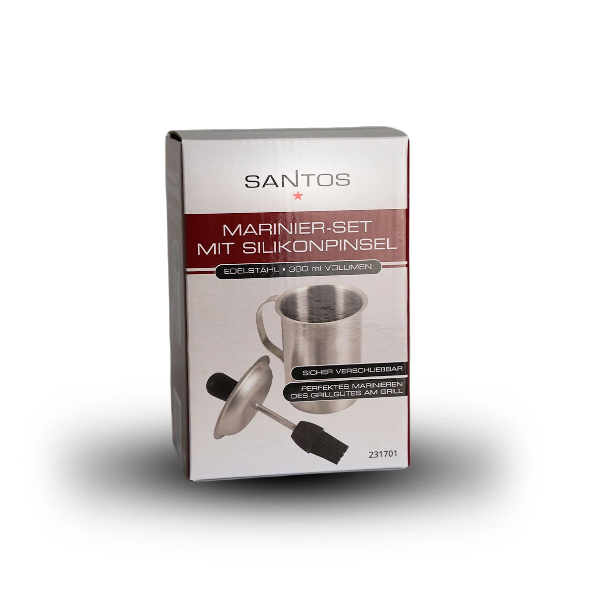 Zubereiten, Erhitzen, Marinieren & Glasieren – mit dem praktischen Marinaden-Set aus Edelstahlbehälter, -Deckel und Silikonpinsel habt Ihr einen Helfer, der Euch am Grill wertvolle Dienste leistet. Vorab das Grillgut marinieren oder während des Grillens glasieren ist mit dem SANTOS Marinier-Set bequem und leicht gemacht: