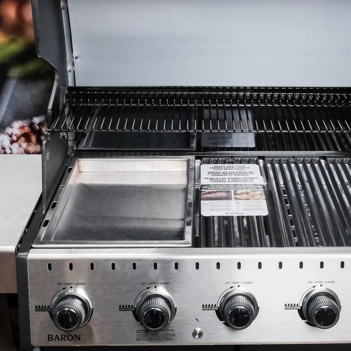 - Es darf niemals die gesamte Grillfläche mit Steakplatten und/oder Einsatzpfannen belegt werden, da ansonsten die Gefahr eines Hitzestaus besteht bzw. es durch Ersticken der Grillflamme zu Austritt von unverbranntem Gas kommen kann.