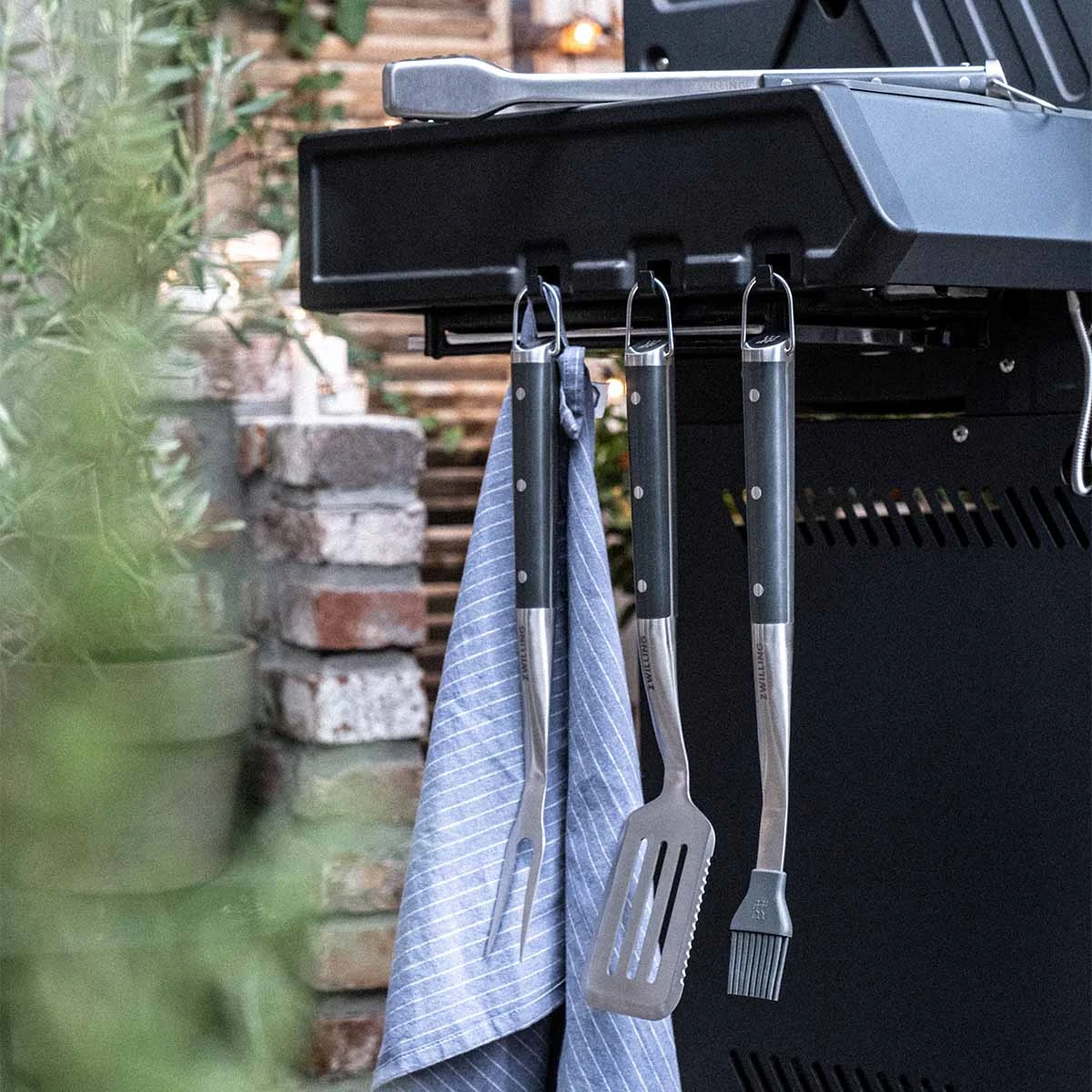 Die präzise gefertigte Grillzange ermöglicht ein einfaches Wenden des Grillguts. Der Grillwender gleitet mühelos unter das Essen, ohne es zu beschädigen. Mit der Fleischgabel lässt sich das Grillgut leicht aufspießen und kontrollieren. Die Grillbürste sorgt für eine einfache und gründliche Reinigung des Grillrostes, während der Marinadenpinsel das gleichmäßige Auftragen von Saucen und Marinaden ermöglicht.